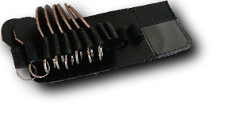 Schlüsselplatte für 10 Schlüsselanhänger und 2 Kugelschreiber, inkl. 8 Schlüsselanhängern (kann mittels Klett in der Tasche fixiert werden)